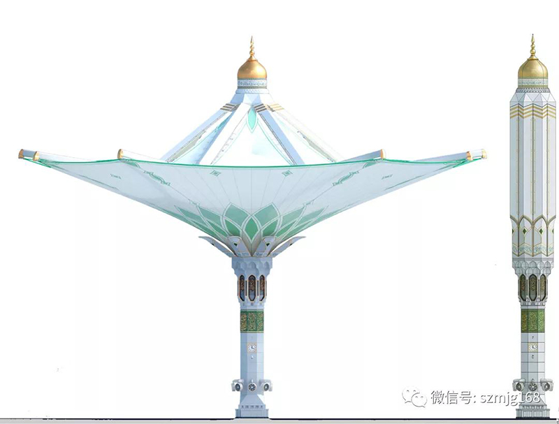 另外在沙特的吉達(dá)機(jī)場(chǎng),也設(shè)計(jì)了兩把方形遮陽傘。