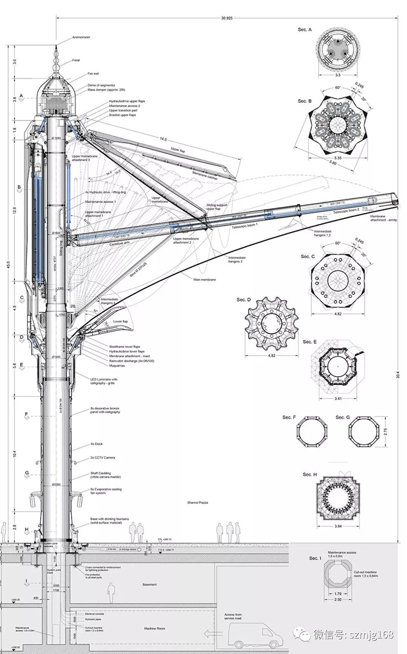 以及阿布扎比的一個(gè)私人會(huì)所,泳池上方有個(gè)大天窗,中間有10米高大傘,可根據(jù)天氣打開或合上。
