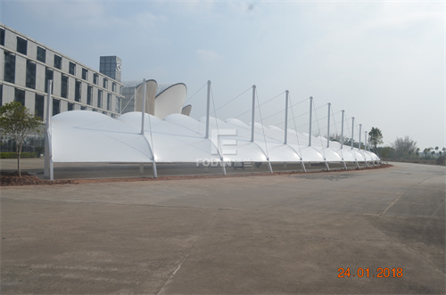 ▲廣東臺(tái)山膜結(jié)構(gòu)車棚——佛蘭空間項(xiàng)目
