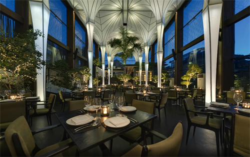 提及吃,必然會想到餐廳,而膜結構憑其藝術性、經濟性、透光性、大跨度、自潔性、工期短等特點,在餐廳領域已有廣泛運用,比如餐廳門頭膜結構,餐廳內飾膜結構,餐廳屋頂膜結構,餐廳外立面膜結構及餐廳遮陽棚等,接下來佛蘭空間將結合案例帶您慢慢欣賞膜結構的魅力。