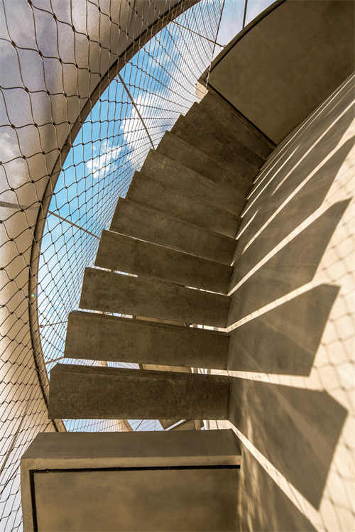 這座高23米造型獨特的餐廳足以吸引全島的目光。建筑使用鋼筋混凝土作為主要材料,金屬網和膜結構作為建筑立面,垂直的桶狀構造既是它的支撐結構也是建筑的主體,外圍使用預制樓板制成的主樓梯盤旋而上。