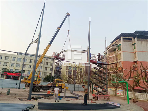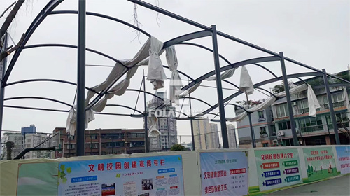 該學(xué)校風(fēng)雨操場(chǎng)位于四川省內(nèi)江市,佛蘭空間負(fù)責(zé)該球場(chǎng)鋼結(jié)構(gòu)的制作、加工、安裝和膜材的制作、加工、安裝。項(xiàng)目人員進(jìn)場(chǎng)后,辛苦施工,不足月余,該項(xiàng)目順利竣工。