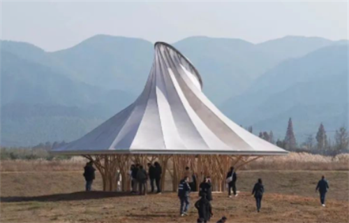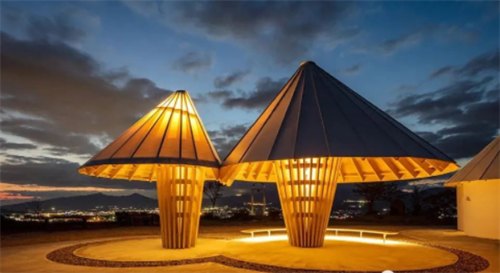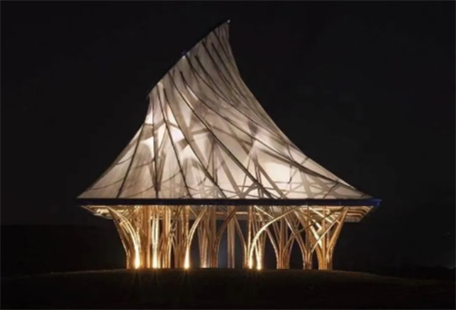 ▲膜結(jié)構(gòu)酒店門頭,佛蘭空間已竣工項(xiàng)目,喇叭花造型,結(jié)構(gòu)輕盈,已成為當(dāng)?shù)氐貥?biāo)性酒店。