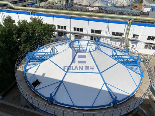 考慮到圓形池能夠依靠周邊傳動推動集氣罩運行,佛蘭空間為其設計了隨動式污水池反吊膜加蓋方案。