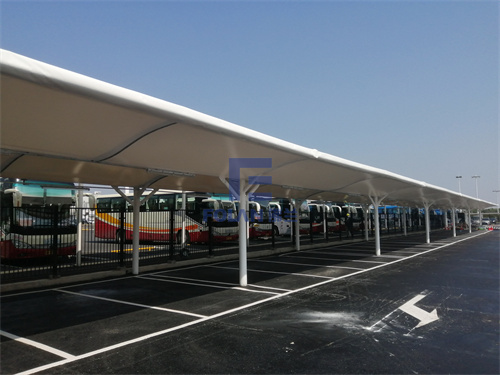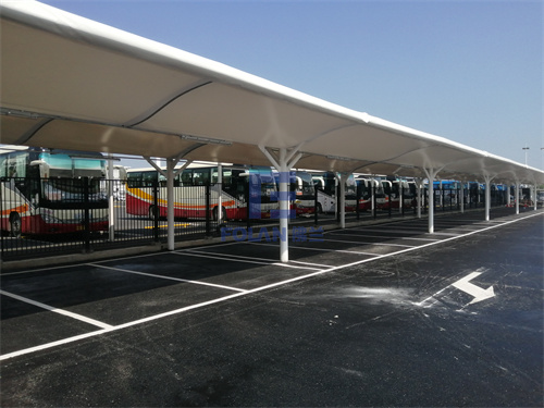 為養(yǎng)護(hù)集團(tuán)大巴車,也為給員工提供一個可遮陽擋雨的上下車場地,深圳北行車公寓興建了一個膜結(jié)構(gòu)停車棚。