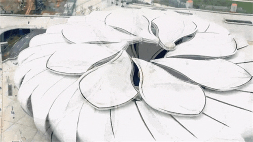 杭州奧體中心體育場屋頂由28片花瓣和27片小花瓣構(gòu)成,遠看好似一朵綻放在錢塘江畔的“蓮花”,十分動感飄逸。
