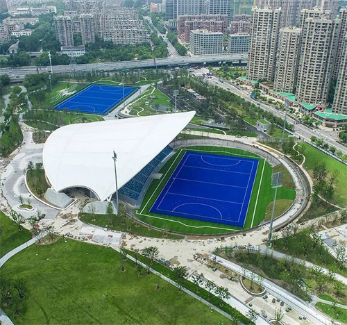 拱墅運河體育公園體育場為亞運會曲棍球項目比賽場地,位于杭州市拱墅區(qū)。建筑造型取自江南油紙傘的骨架,造型輕盈優(yōu)美。