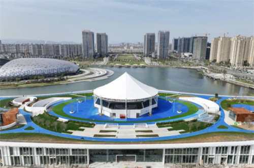 亞運會三人制籃球賽將在這里舉行,這也是全世界首個固定的三人籃球場館,頂部運用鋼膜結(jié)構(gòu)蓋頂。