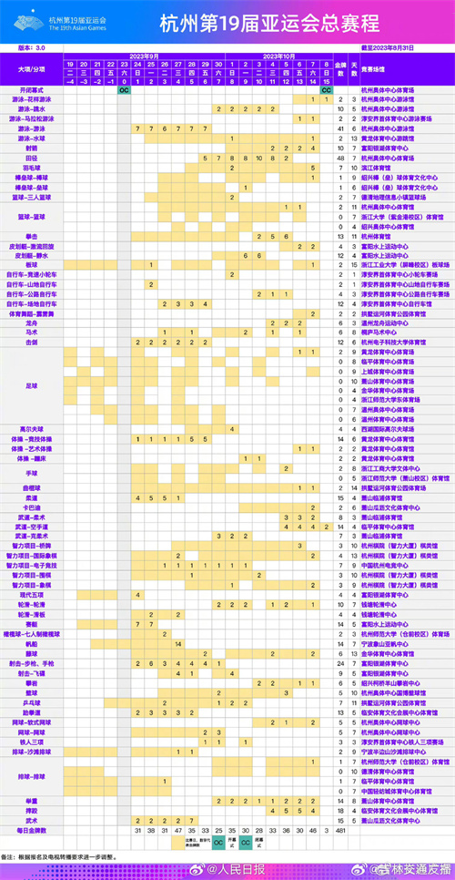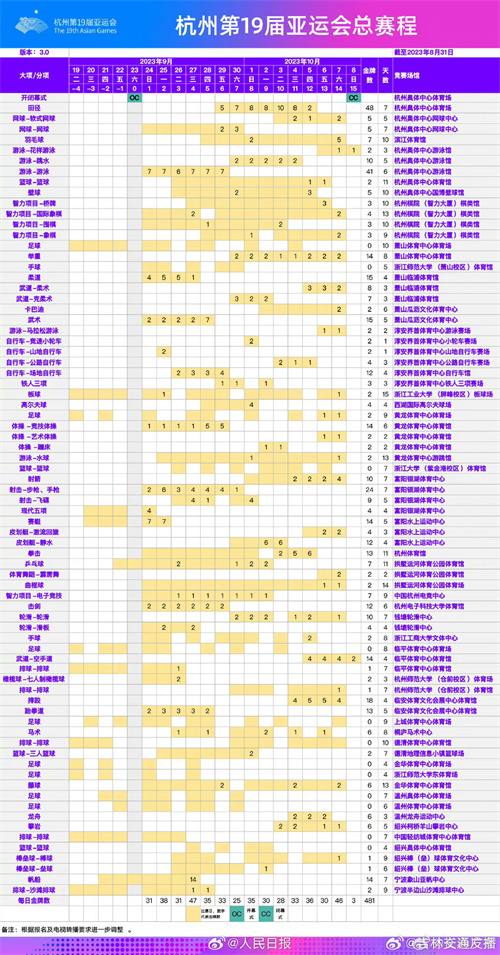 最后附上最新的亞運會賽程。
