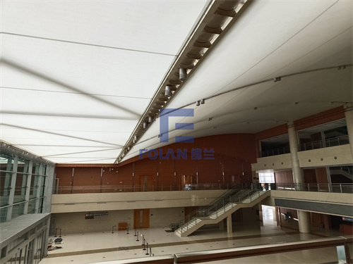 考慮到會議中心的吸音性與自潔性,在重新更換膜材時,佛蘭公司采用了PTFE內(nèi)膜。PTFE內(nèi)膜有著更舒適的光學性能及更好的自潔性、吸音性和安全性,既能營造舒適明亮的會議中心室內(nèi)環(huán)境,還能起到美化和提升室內(nèi)逼格的作用!