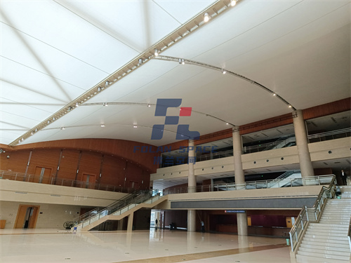 在虎門高鐵站項目中,佛蘭空間采用PTFE內(nèi)膜作為室內(nèi)吊頂材料。這種材料具有優(yōu)異的吸音和透光性能,能夠為高鐵站營造明亮、舒適的旅途空間。