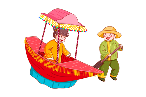 劃旱船,民間傳說(shuō)是為了紀(jì)念治水有功的大禹的。旱船不是真船,多用兩片薄板,鋸成船形,以竹木扎成,再蒙以彩布,套系在姑娘的腰間,如同坐于船中一樣,手里拿著槳,做劃行的姿勢(shì),一面跑,一面唱些地方小調(diào),邊歌邊舞,這就是劃旱船。