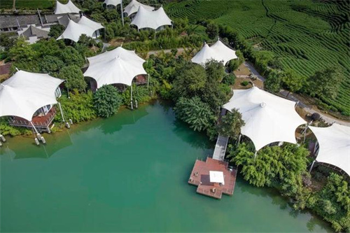 膜結(jié)構(gòu)憑其輕巧獨(dú)特的造型,已廣泛用于休閑旅游場景,比如常見的膜結(jié)構(gòu)大門入口,過道、景觀小品、停車棚,帳篷酒店,餐廳、表演舞臺、游戲場所等,這些膜結(jié)構(gòu)不僅為游客提供休息、觀景的舒適場所,還能自成一景,供游客欣賞。