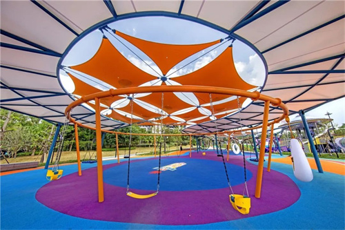 如今,很多主題樂園里的游戲場所,都會在游樂設(shè)施的上方設(shè)置膜結(jié)構(gòu)頂篷,既可起到遮陽的作用,又能增強(qiáng)游樂設(shè)施的視覺效果。下面這2個主題公園和水上樂園,就恰如其分地運(yùn)用膜結(jié)構(gòu)發(fā)揮其遮陽擋雨效果。