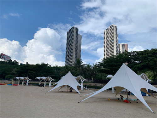 夏天,海邊是個適合休閑娛樂的場所,不難發(fā)現(xiàn),海邊有很多張拉膜建筑,有的是可供游客休息的景觀亭子,有的則是在海邊臨時搭建的膜結(jié)構(gòu)餐廳。