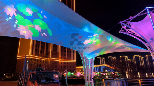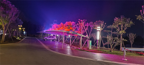 佛蘭空間項(xiàng)目——小區(qū)膜結(jié)構(gòu)車(chē)棚,燈光變幻