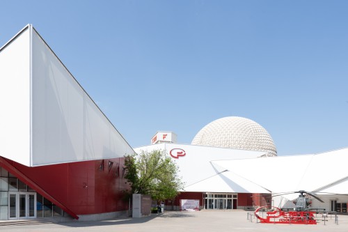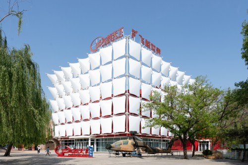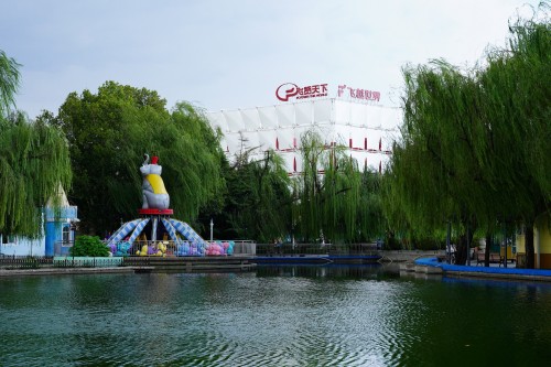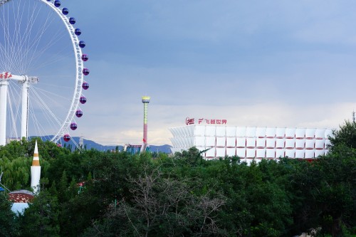 北京飛覽天下飛行劇場,位于北京西部石景山游樂園,是一座模擬飛行游樂活動的劇場,于2019年完工。通過在巨型屏幕上投射高質量的中國大美河山及世界各地的壯觀景色圖像,為游客提供令人難以抗拒的沉浸式飛行體驗。